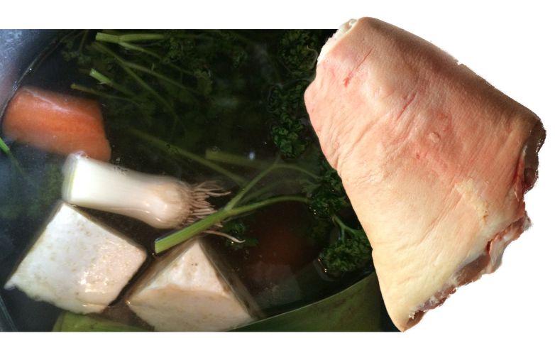 Aber es muß schon schön langsam kochen damit es schön zart wird, es sollte schon fast vom Knochen fallen. Geben Sie das Eisbein immer in kochendes Wasser, gewürzt mit Suppengrün, Salz, Pfeffer und Gewürze die sie mögen (Piment, Wacholder, Lorbeer usw.). Das ist ja eine allgemeine Regel – wenn man das „Fleisch“ braucht, dann in heißes Wasser. Wenn man aber die „Brühe“ braucht (wie Suppenhuhn, Knochen usw.) immer im kalten Wasser ansetzen. Diese Brühe vom Eisbein ist aber trozdem super geworden, es ist zwar keine Rinderkraftbrühe, aber verwenden kann man diese Brühe allemal. Das ist auch schon mal der Vorteil vom frischen Eisbein – die Brühe und vorallem das man es so weich kochen kann wie man es mag. Es gibt ja diese fertig gekochten Eisbeine zu kaufen…. die sind meistens zäh… wie man das hinbekommen kann ist mir ein Rätsel.